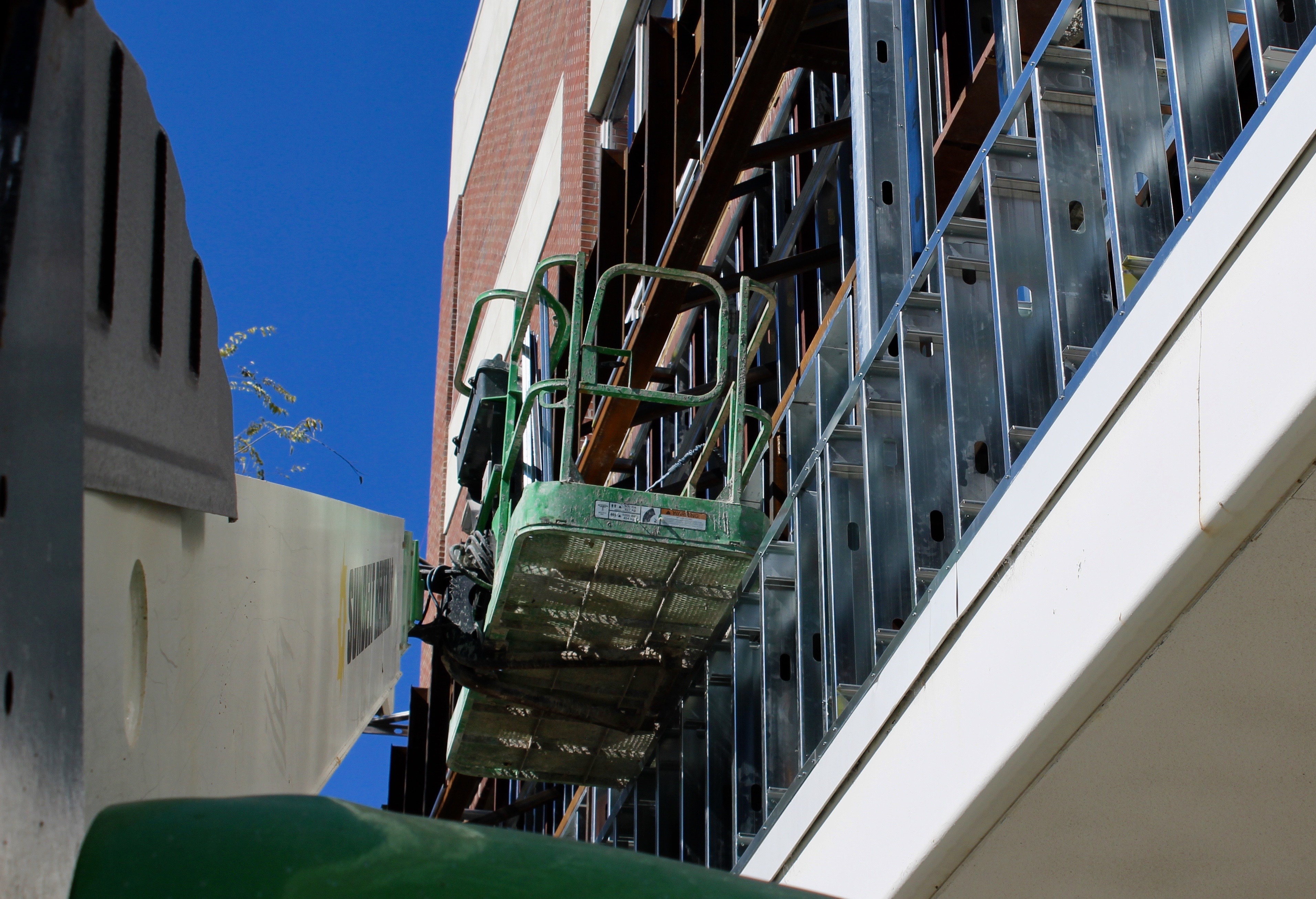 When walking the beautifully manicured grounds of the university, be sure to stop by the Reitz Union to admire the scaffolding that covers half the building. In particular, notice the workers installing new railings around the Reitz—the most excellent use of two million dollars of school funds possible.